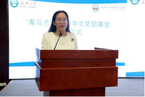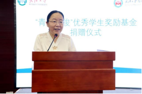 致辞。她代表学校向奖励基金的捐赠者丁俊萍教授表达了崇高敬意和衷心感谢,回顾了丁俊萍教授从风华正茂的青年教师、到两鬓斑白的老教授这41年来为教学科研不懈奋斗的历史,总结了党的十八大以来杏吧原创