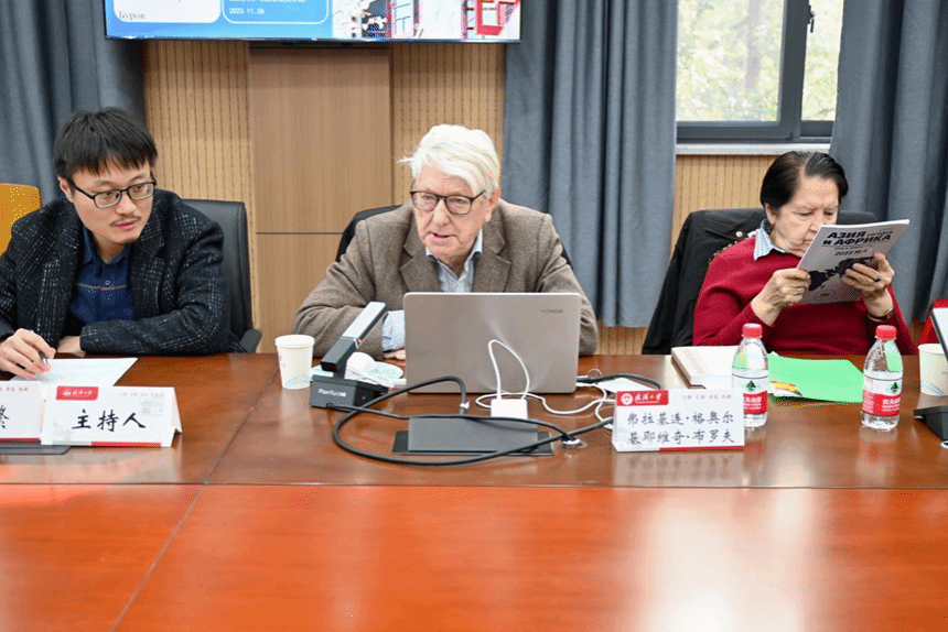 布罗夫教授是俄罗斯著名汉学家,国际孔子学会顾问、国际儒学协会顾问、东方易学研究院顾问、中国社会科学院《世界社会主义研究》杂志编委。布罗夫教授一直致力于研究中国哲学,承担中国社会科学重要著作的翻译工作,并将中国哲学通过自己的力量传播到俄罗斯,为推动中国哲学走向世界作出了重要贡献。特别值得一提的是,布罗夫教授今年已经92岁高龄,讲座前进行了精心准备,饱含激情地为我们带来了此次讲座。