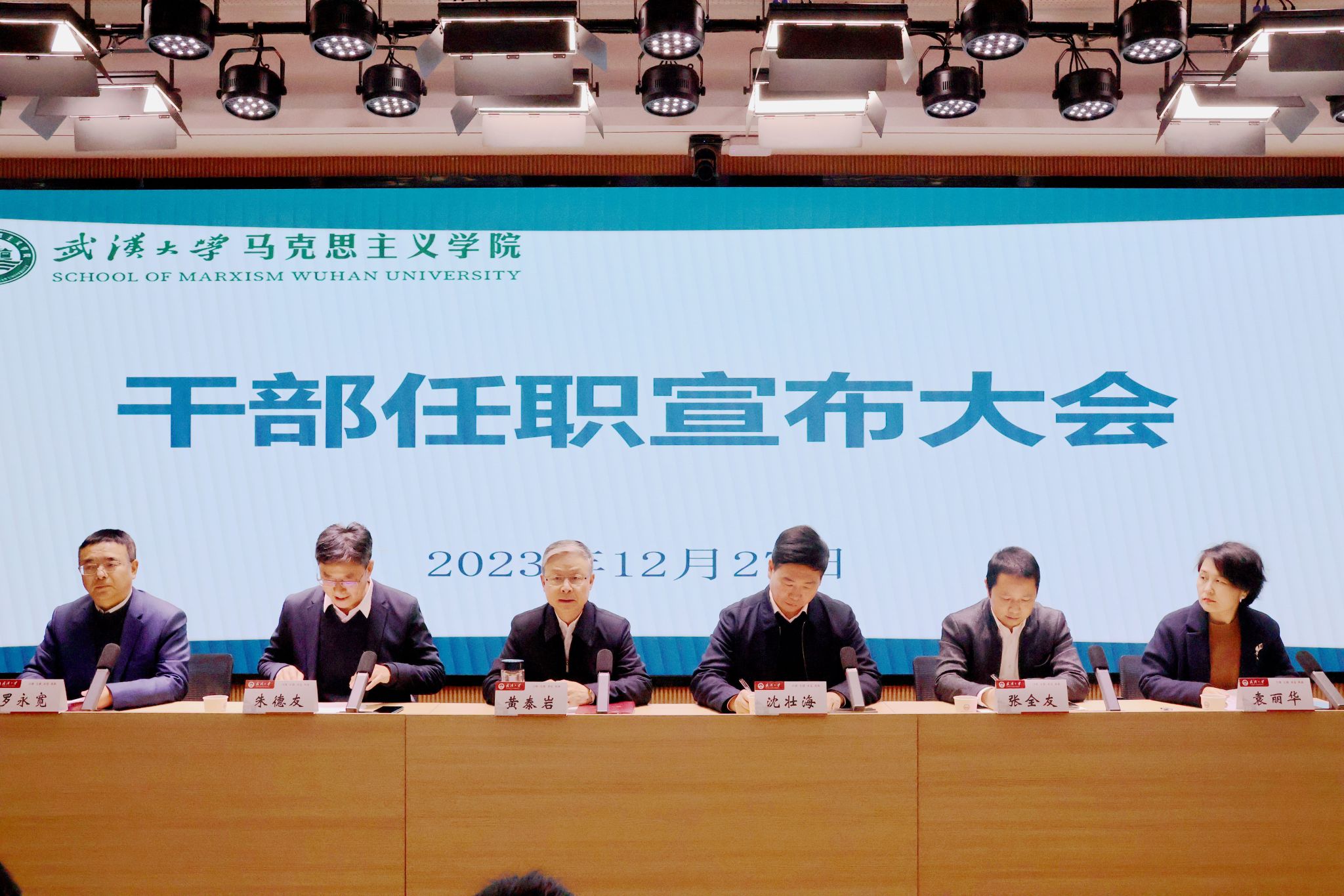 召开干部任职宣布大会。学校党委书记黄泰岩出席会议并讲话,校党委常务副书记沈壮海主持会议,校党委常委、副校长兼组织部部长朱德友宣读学校文件。新任学院党委书记张全友、院长罗永宽及学院领导班子成员、学院全体教职工及学生代表参加大会。