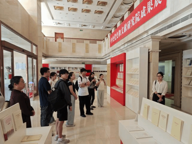 在中央党史和文献研究院北分办公区的著作出版成果展,研学师生在樊宪雷副局长和纪文娟老师的带领和讲解下,参观了中央党史和文献研究院编译研究习近平新时代中国特色社会主义思想、中国共产党历史、马克思主义经典作家文献、党和国家重要文献、党和国家主要领导人著作、马克思主义基本理论、马克思主义中国化及其主要代表人物著作等方面的成果,特别是2018年机构改革以来的相关成果。