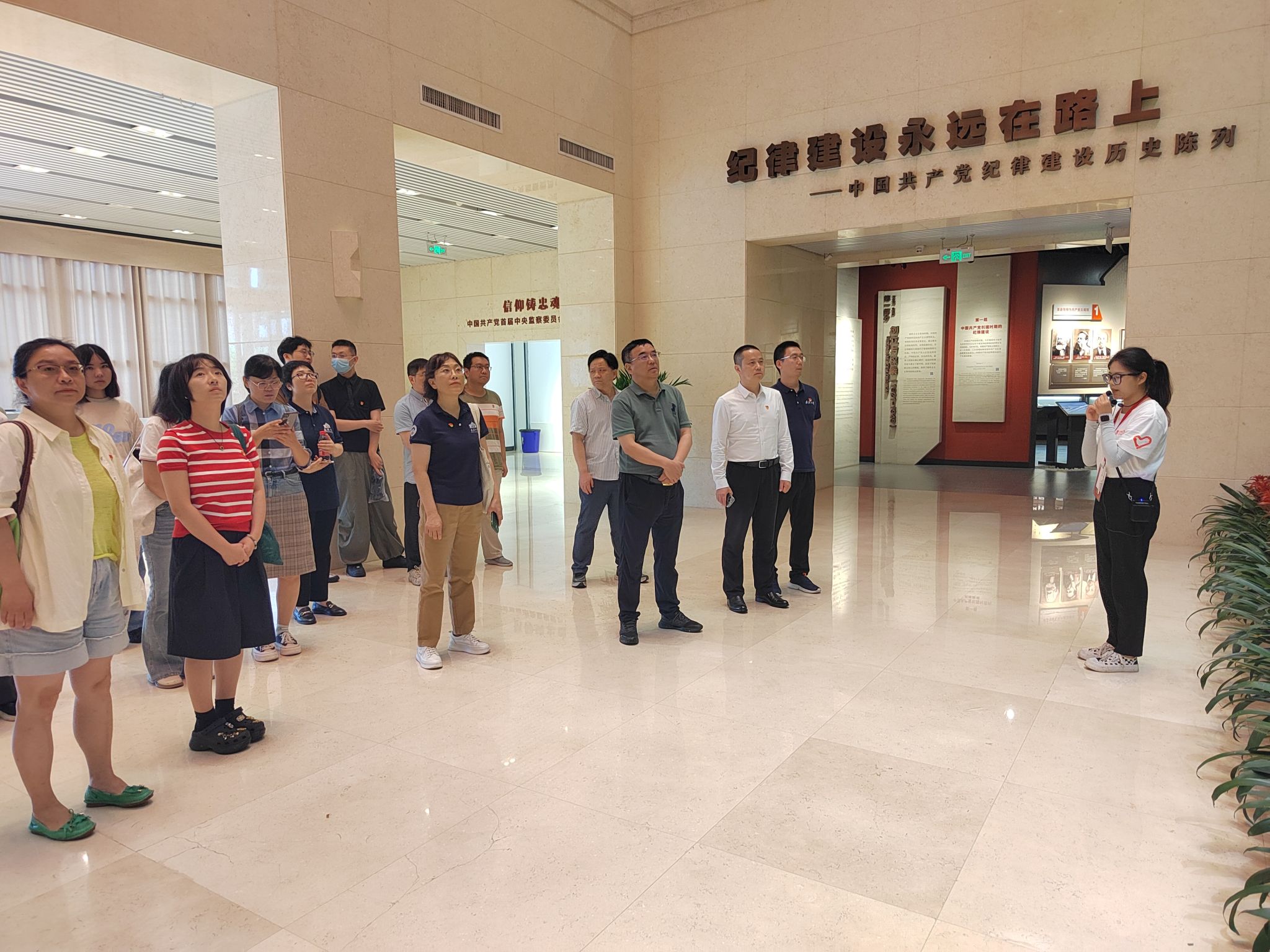 在参观过程中,师生们首先来到中国共产党纪律建设历史陈列展。展览通过丰富的历史资料和珍贵的文物,展示了中国共产党自成立以来在纪律建设方面的探索与实践。讲解员结合展品,生动讲解了党的纪律建设的历程和重要意义,引导师生们深入思考如何在新时代加强党的纪律建设。