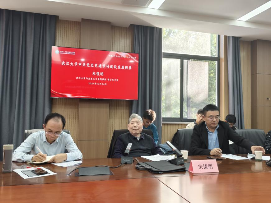 历史系、参与湖北地区党史调查为引,介绍了自己确立唯物史观的过程,启发大家做党史党建研究首要是树立正确的党史观。接下来,宋教授回顾了自己参与党史党建学科建设的教学科研经历,并将我校中共党史党建学科的发展历程总结为四个阶段:一是“中共党史学科建设的起步”阶段,他介绍了我校创办政治系、设置党史专业,成立党史教研室,扩充党史师资队伍以及参编党史讲义和湖北革命史资料的历程;二是“中共党史学科建设的曲折和重建”阶段,他讲述了特殊历史时期党史专业发展遭遇的曲折过程;三是“中共党史党建学科建设热潮的兴起”阶段,他着重回顾了改革开放新时期经过思想解放,我校党史党建学科教学改革取得的新成就、党史研究方向的聚焦过程、党史硕士学位点的设置、取得的系列学术成果、主办的重要学术研讨会以及党建研究方向的首创经历;四是“中共党史党建学科建设的发展”阶段,他总结了我校建设中共党史(含党的学说与党的建设)博士点、获批重大科研项目和横向课题、培养优秀人才、成立中共党史党建系的宝贵经验。