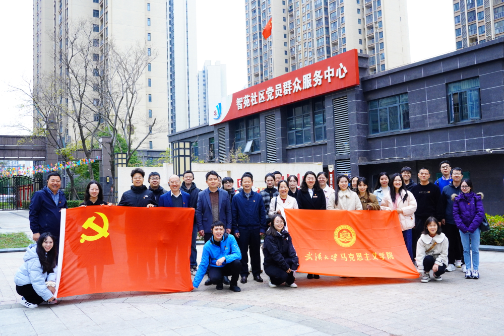 2024级博士第一、第二党支部全体党员和部分研究生代表,在学院党委书记张全友、党委副书记孙燕、副院长陈世锋、中共党史党建系副主任朱国伟以及辅导员陈立志的组织带领下,前往武汉市东湖新技术开发区左岭街道智苑社区开展共建“大思政课”实践教学基地活动。活动以“跟随总书记脚步 共同缔造美好生活”为主题,通过深入了解智苑社区在党建工作、志愿服务和老年人生活保障等方面的创新实践和成效,实地体验领悟习近平总书记对基层群众的关怀厚爱和对基层党建工作的殷切期望,引领研究生党支部将理论与实践相结合,打造坚强的战斗堡垒。