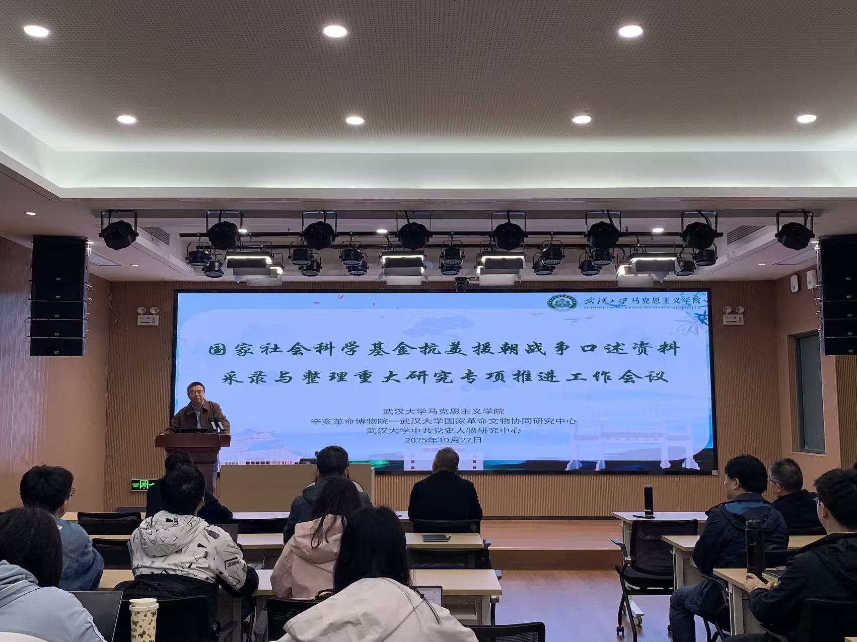 2025年10月27日下午,国家社会科学基金抗美援朝战争口述资料采录与整理重大研究专项推进工作会议在学院召开。学院院长罗永宽教授、课题负责人宋俭教授、课题组成员和学生志愿者等共50余人出席会议。课题组成员、党史党建系支部书记万军杰老师主持会议。