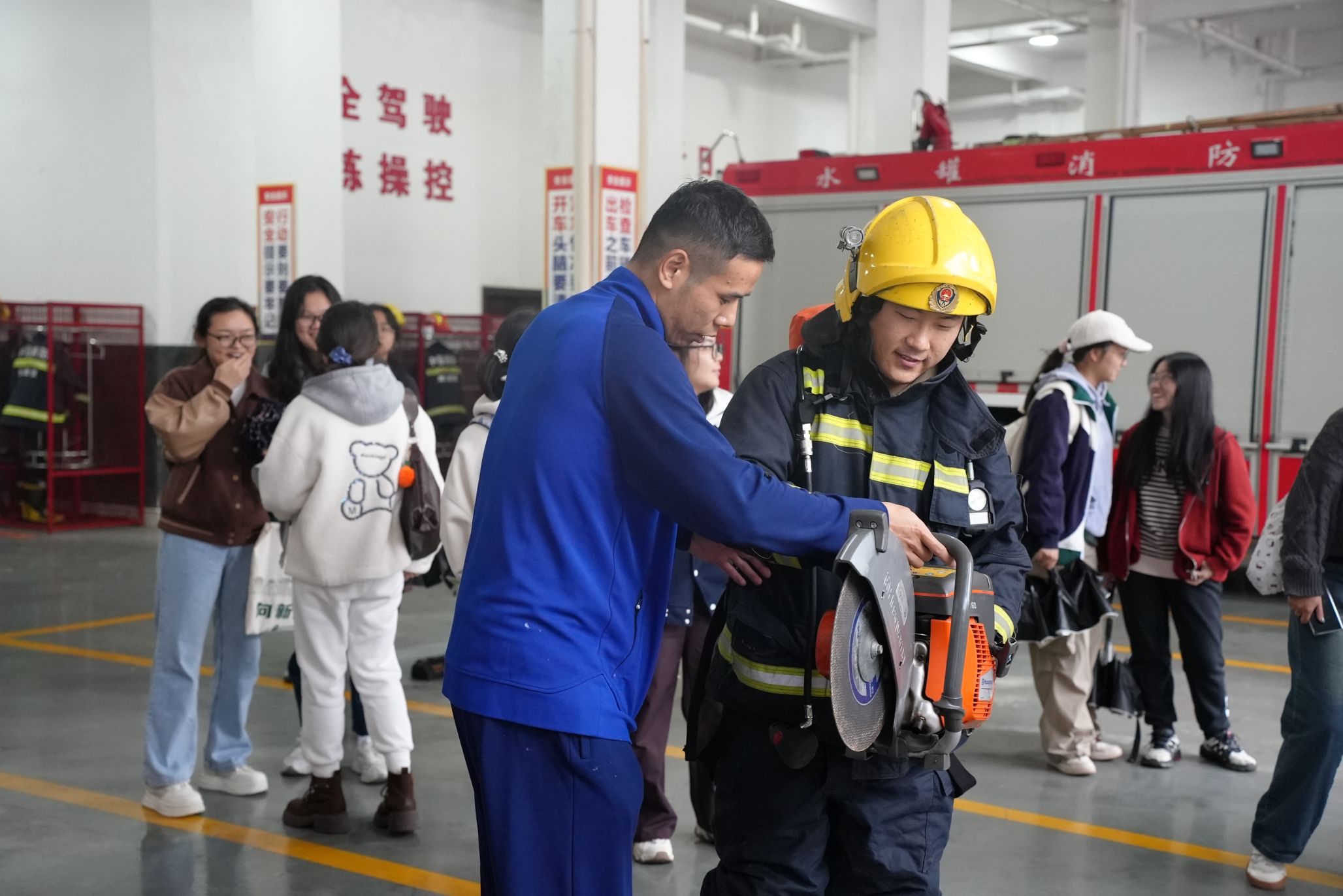 活动伊始,消防站指导员带领师生们近距离参观并讲解了各类消防器材的使用方法及适用场景。从灭火器、消防水带到破拆工具、呼吸面罩,指导员逐一演示操作步骤,并邀请师生动手体验,帮助大家掌握基本的消防设备操作技能,增强了应对突发火情的实践能力。