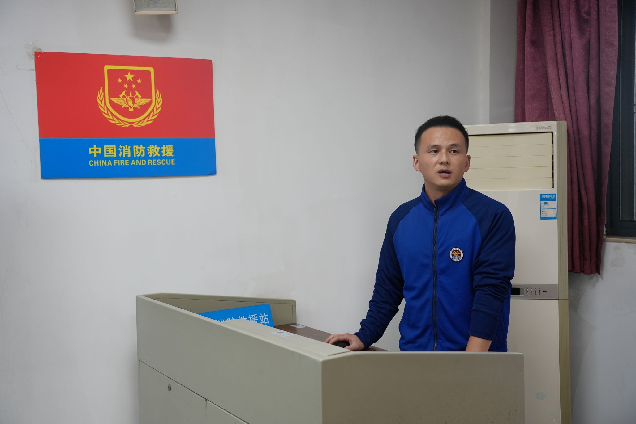 在内务展示环节,指导员带领师生走进消防员宿舍。整齐划一的物品摆放、干净整洁的环境,尤其是叠放如“豆腐块”般的被子,展现了消防队伍严谨的作风和良好的精神风貌。这一细节让师生们深受触动,对纪律建设和内务管理的重要性有了更直观的理解。