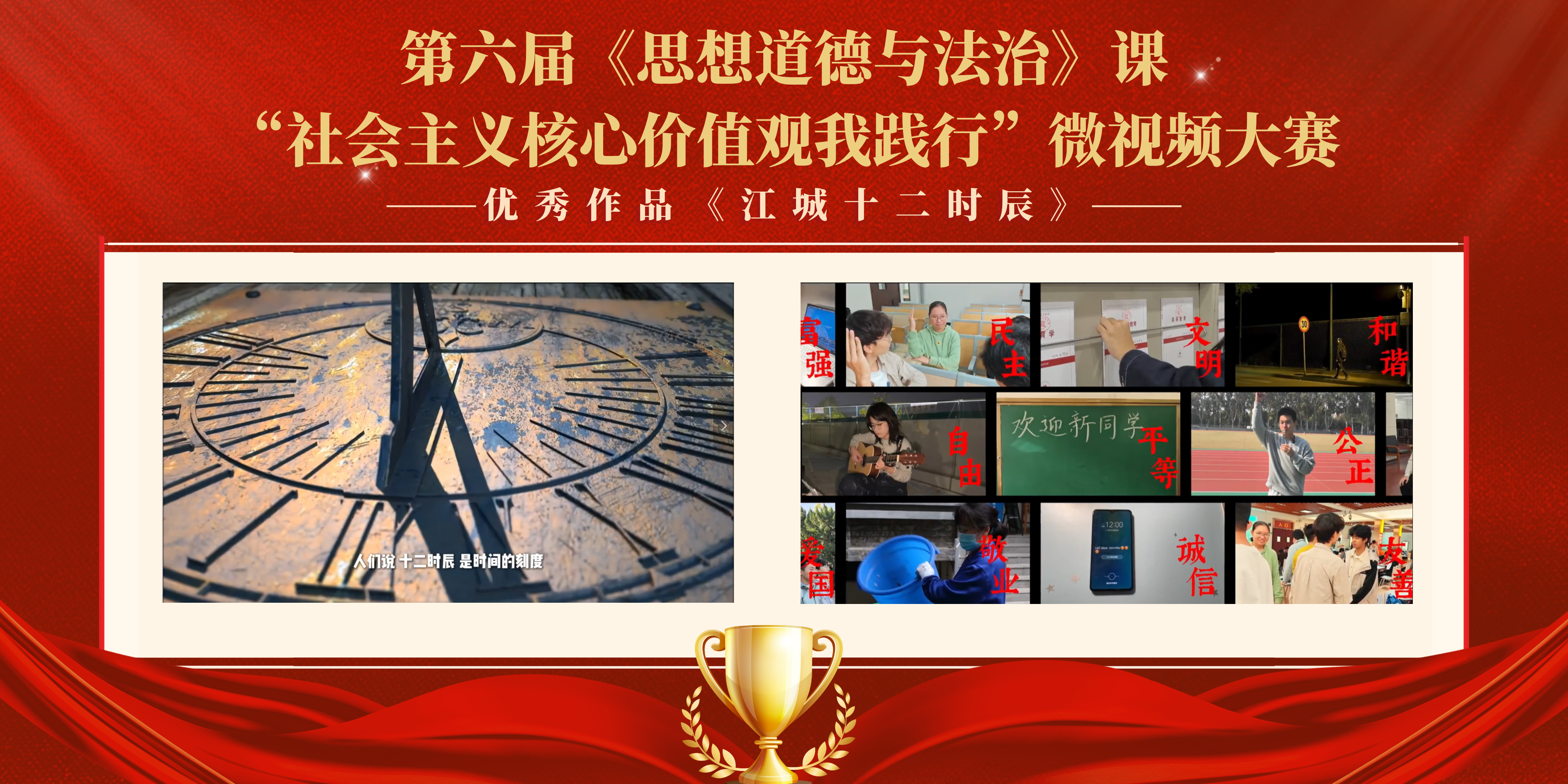 思想道德与法治课程中心承办的第六届《思想道德与法治》课“社会主义核心价值观我践行”微视频展演圆满落幕。本届展演依托《思想道德与法治》课程,面向全校2025级本科生,鼓励珞珈学子以微视频的形式表达对社会主义核心价值观的所思、所见、所感,激发学生自主学习和实践创新的热情,进一步提升《思想道德与法治》课程的育人实效。