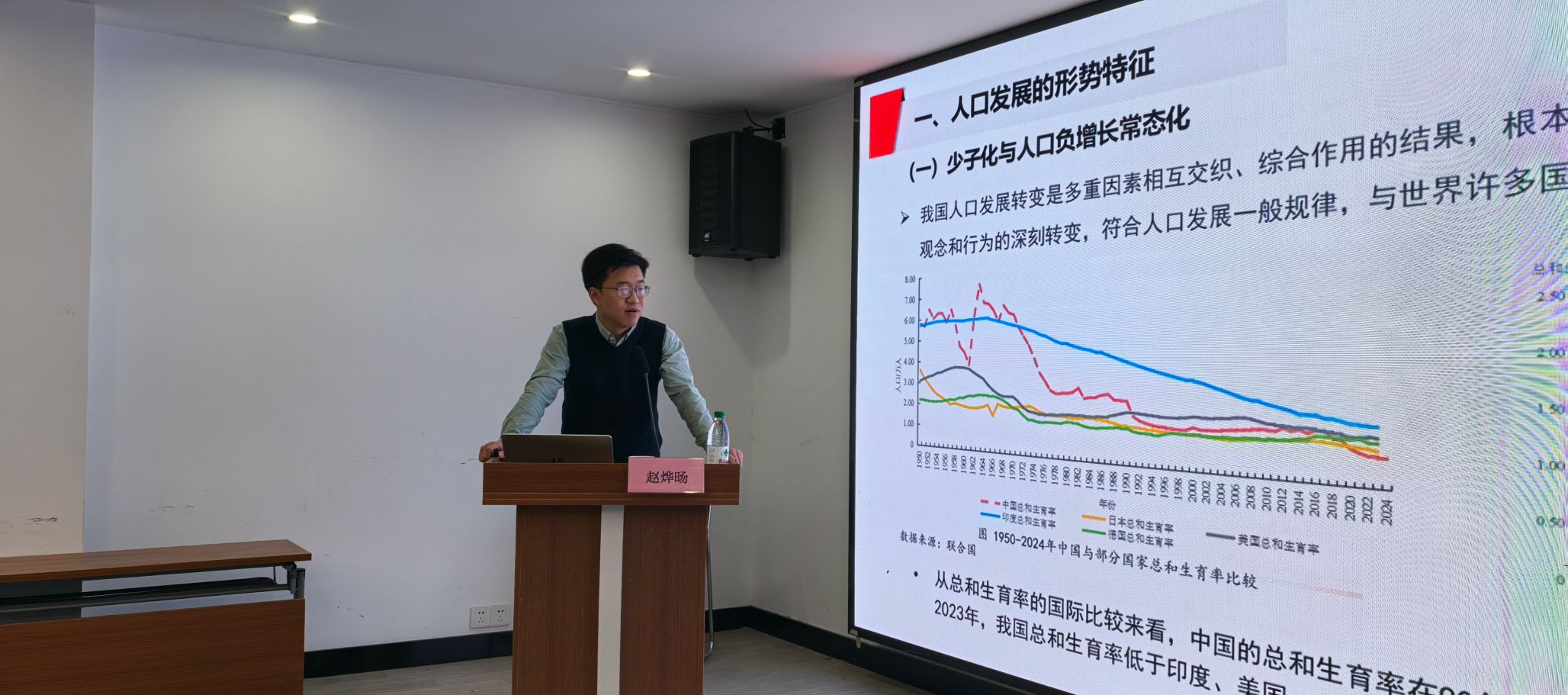 两支宣讲小分队精准对接不同群体需求:赵烨旸老师深入墨池巷社区,开展“十五五时期促进人口高质量发展”宣讲,深刻分析当前人口发展的形势特征。