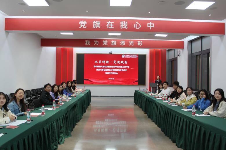 组织员任竹芸、华中科技大学公共管理学院组织员何磊、学生党建工作中心指导老师陈甜及两院研究生党务骨干参会交流。