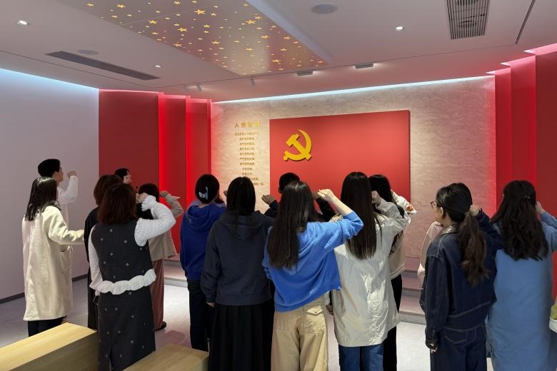 活动伊始,两院参会师生共同考察了华中科技大学党旗领航教育基地展馆。在翔实的史料展示与现场讲解中,大家一起学习了华中科技大学“党旗领航工程”建设脉络、发展历程与特色育人实践,直观感悟高校党建引领立德树人的鲜活成果。考察结束后,全体党员面向鲜红党旗庄严列队,重温入党誓词,重忆入党初心、坚定理想信念,在铿锵誓言中砥砺使命担当、筑牢思想根基。