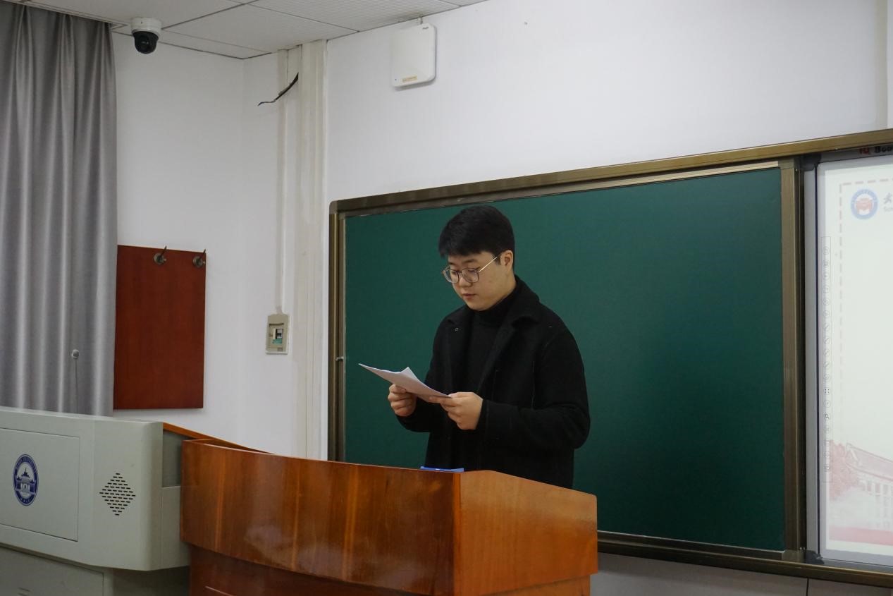 2021级硕士研究生党支部书记洪志劭总结支部一年来围绕贯彻党的二十大精神,不断强化思想政治建设,统筹推动党史学习教育常态化的工作成果。其中,洪志劭特别介绍了支部“巧借微元素,构建大思政”的工作思路及“五微一体”大思政工作格局,支部“党员微党课宣讲接力”、推出宣讲微视频、自制微电影党课等特色品牌活动打通“学”“研”“践”“传”育人全链条,有效发挥思政专业学科优势,将习近平总书记“大思政课我们要善用之”和党建要“与业务工作深度融合”的要求落到实处。