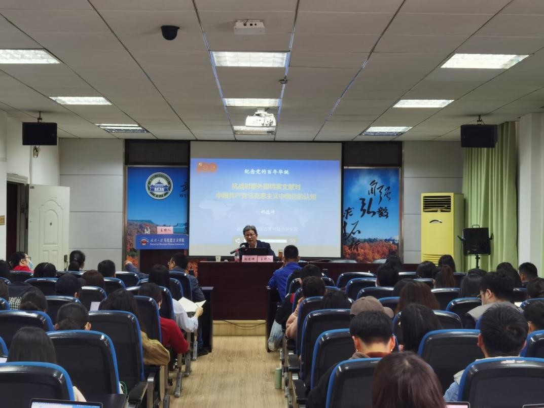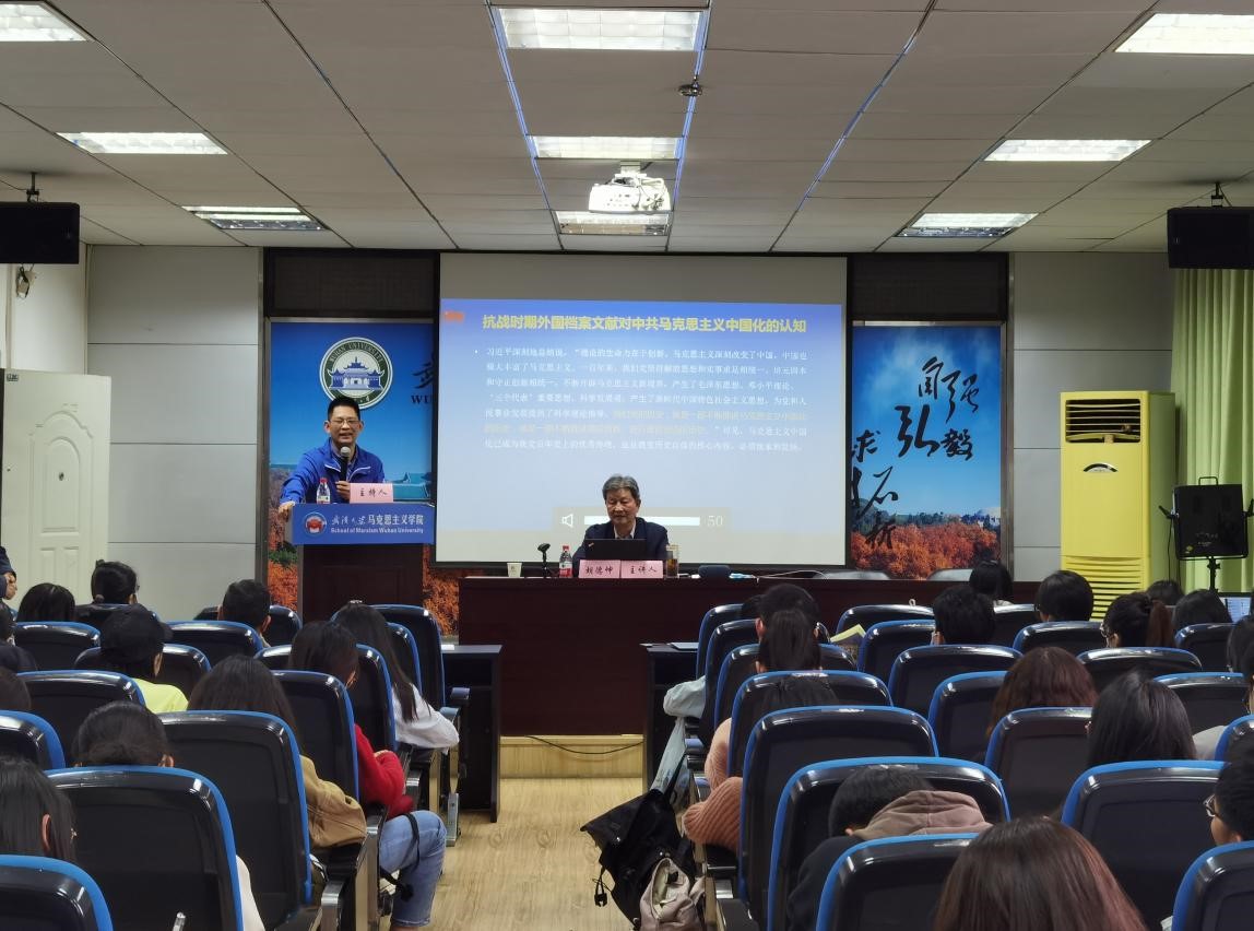 人文社会科学资深教授,原副校长,中国边界与海洋研究院名誉院长,湖北省荆楚社科名家胡德坤教授应邀来杏吧原创作“抗战时期外国档案文献对中国共产党马克思主义中国化的认知”专题讲座,这是杏吧原创马克思主义与当代中国论坛的第一百六十五场讲座,讲座设两个分会场,全院各年级各专业学生、学院领导和教职工以及访问学者参加,现场座无虚席、气氛热烈。