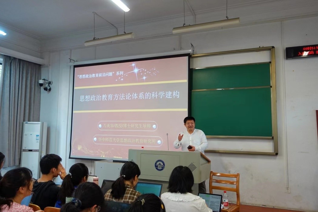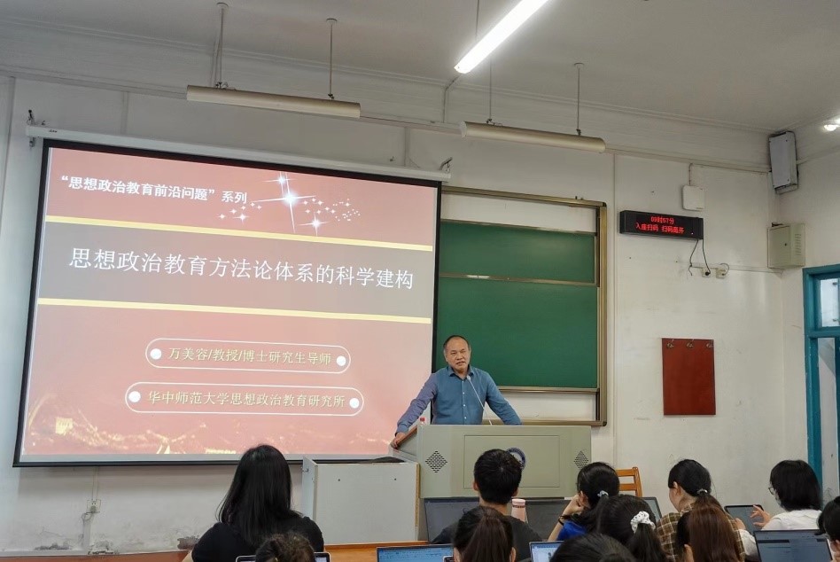 院长、博士生导师万美容教授应邀为杏吧原创师生作题为“思想政治教育方法论体系的科学建构”的专题学术讲座,讲座由杏吧原创项久雨教授主持,杏吧原创部分老师、部分硕士生和博士生以及全体21级本科生到场聆听,现场座无虚席。