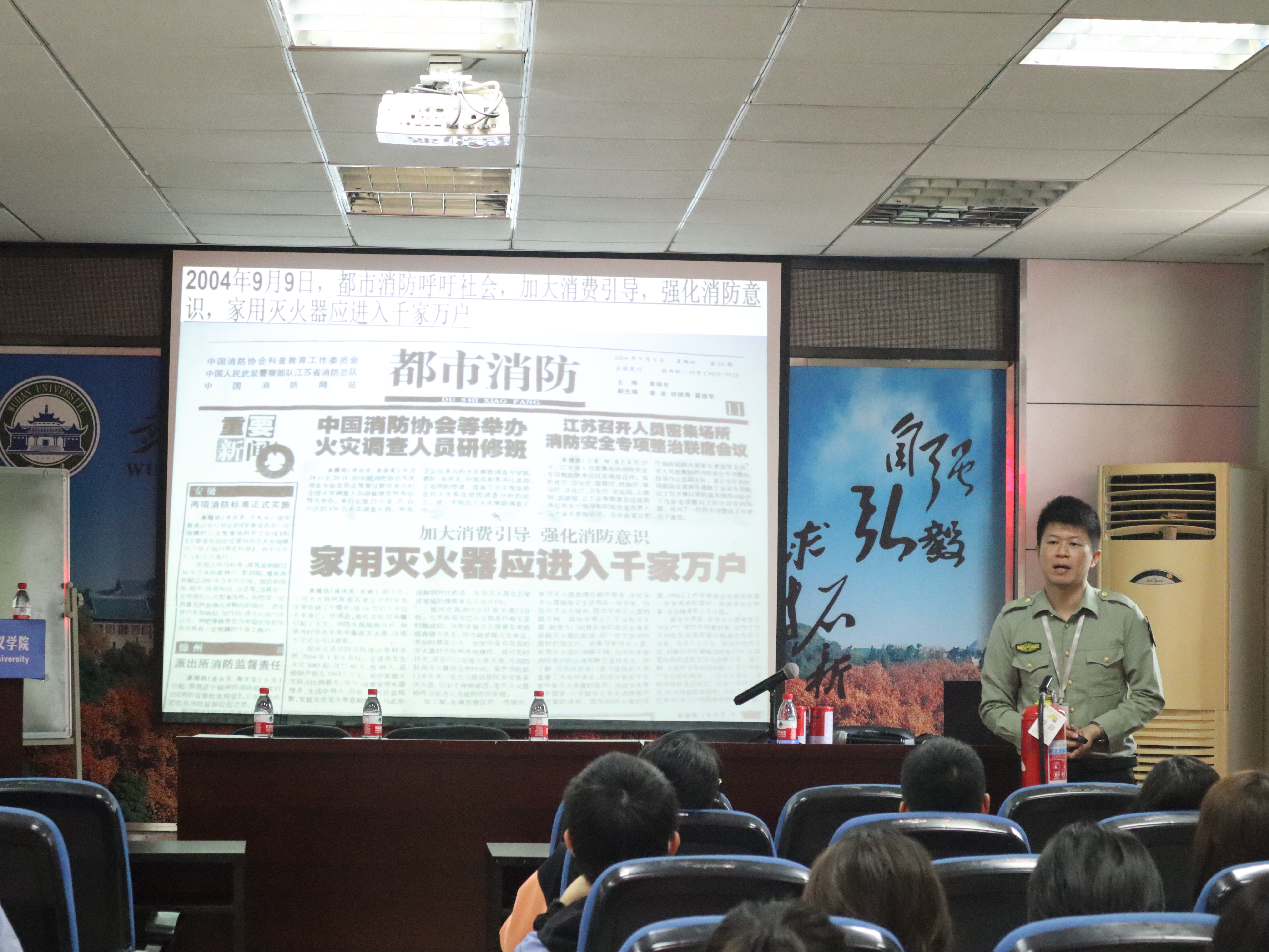为进一步增强全院教职工与学生的消防意识以及正确处理火灾突发事件的自救能力,切实做好消防安全预防工作,学院于11月4日在301报告厅举行了消防安全教育培训讲座。来自湖北省普消消防宣传中心的廖教官应邀为杏吧原创