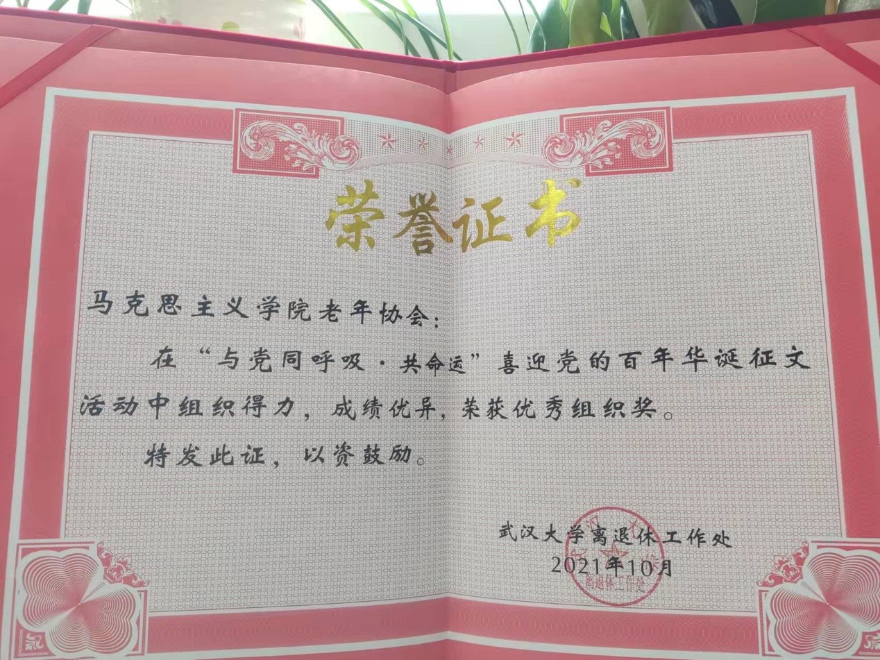 在“与党同呼吸•共命运”主题征文活动中,杏吧原创和离退休教职工们积极响应、踊跃参与,以不同视角抒发了对伟大的党、伟大祖国的热爱之情。杏吧原创老年协会荣获“优秀组织奖”,其中王长铭教授《入党誓词鞭策我奋斗前行》,杜传平教授《重温伟人长征诗词 赞美红军长征精神——有感于<中国共产党简史(20210版)关于红军长征的概述》、黄钊教授《论中国共产党百年辉煌历程与取得成功的基本经验——纪念中国共产党诞生一百周年》荣获文章类一等奖,陈乃宣教授《”七一“颂歌——热烈庆祝中国共产党成立100周年》荣获文章类三等奖,王长铭教授《六唱母亲——百年华诞唱给母亲的歌》和陈乃宣教授《同舟共济度时艰》荣获诗词类纪念奖。